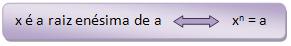 Considere a como um número real e n um número natural não-nulo. O número x recebe o nome de raiz enésima de a, somente se for elevado ao expoente n reproduz a.
