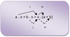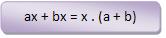 A primeira parcela a . x é o produto do fator a pelo fator x. A segunda parcela b . x é o produto do fator b pelo fator x. Portanto, o fator comum das duas parcelas é x, que poderá ser colocado em evidência modificando a soma pelo produto do fator x pelo fator (a + b).
