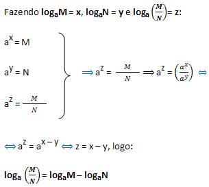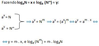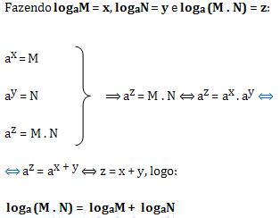 Para: M > 0, N > 0, a > 0 e a ≠ 1.