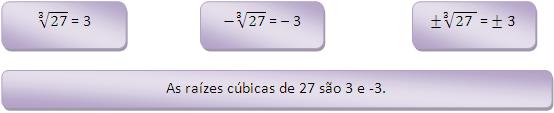 O número -3 é uma raiz cúbica de -27, pois (-3)3 = -27
